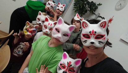 Czy ktoś, kto interesuje się kulturą Japonii, mógł nie słyszeć o zmiennokształtnych lisach kitsune? Na warsztatach młodsi uczniowie RakuGaku dowiedzieli się więcej o tych fantastycznych istotach (chociaż dalej nie ma pewności, ile maksymalnie mogą mieć ogonów...) i stworzyli własne lisie maski. Może się przydadzą na jakąś halloweenową imprezę? Albo poczekają na karnawał?